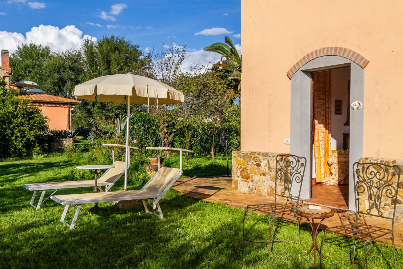 Le nostre camere di 20 m2 sono cosi composte: camera da letto, bagno completo con cabina doccia non finestrato e uno spazio esterno privato attrezzato di tavolo,sedie e lettino prendisole.
